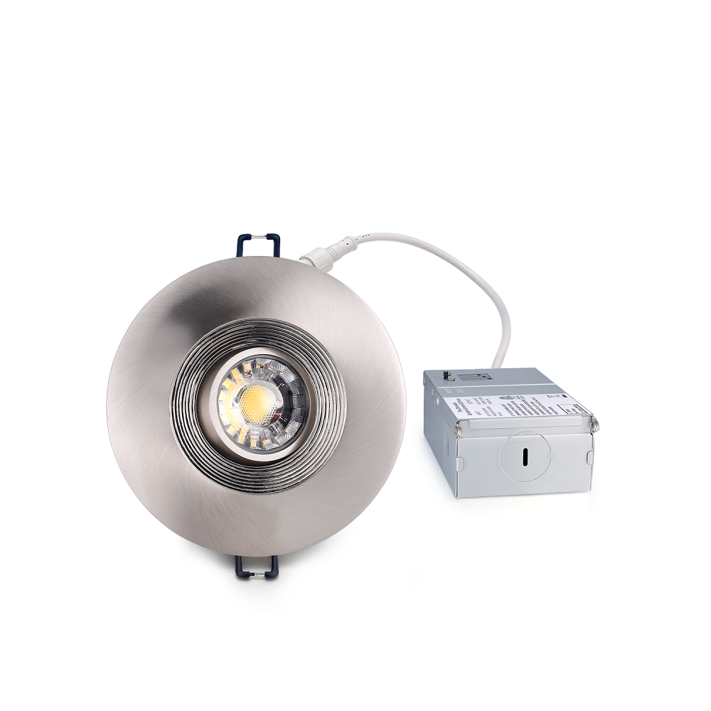 LED-GIMBAL-PRO Series lights are bright, energy efficient and elegantly designed. They are an ideal solution for commercial and residential applications requiring compact shape, superior quality and visual aesthetics. This 8W light produces 696-784Lm (depending on the CCT). At 1.77" tall and 2.48" round they can fit into tight spaces that a traditional recessed can light can't, such as ceilings with ductwork/piping/obstructions, hot-roof ceilings with limited vertical clearance, and tight soffits. It comes in Black, White and Brushed Nickel Finishes. Each light can be set at 3000K, 4000K or 5000K CCT (Adjustable). These lights feature an easily adjustable LED face (Gimbal) that can be pointed straight downward, making them compatible with sloped ceilings. This product is ETL certified.