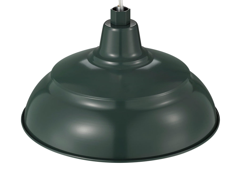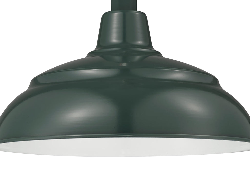 Millennium Lighting 14" RLM Warehouse Shade With Selected Goose Neck Mount and Wire Guard, Satin Green Finish